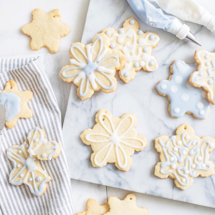 Bring in the holiday cheer into your kitchen with these melt-in-your-mouth sugar cookies that are easy & fun to make! Whip up a buttery sugar cookie dough, roll out, then cut out with the snowflake cookie cutter in your kit. Have the whole family join in on the festivities & pipe decorations on their own cookies with frosting tinted a beautiful icy blue with butterfly pea powder, then finish with sparkly sugar decorations.