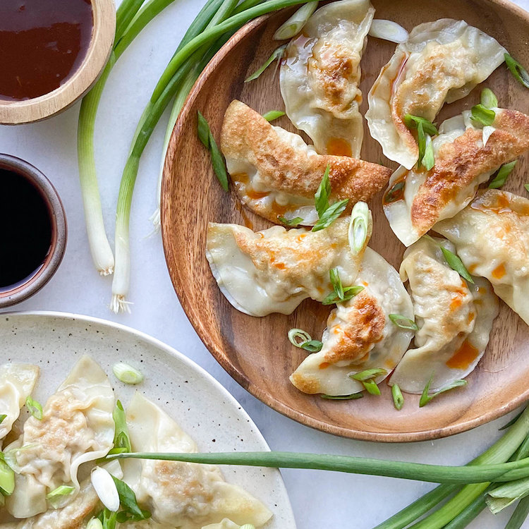 Kick off Lunar New Year with this classic, delectable dumpling recipe from The Sauce Maven, Chef Natalie! Combine ground pork from Riverview Farms, green onion, chopped cabbage & aromatics. Fold dumpling wrappers around your filling then steam fry to brown on the outside and cook the juicy goodness within. Drizzle with chili oil and serve with a harmonious blend of Natalie's sauces and a traditional soy-vinegar sauce for dipping.
